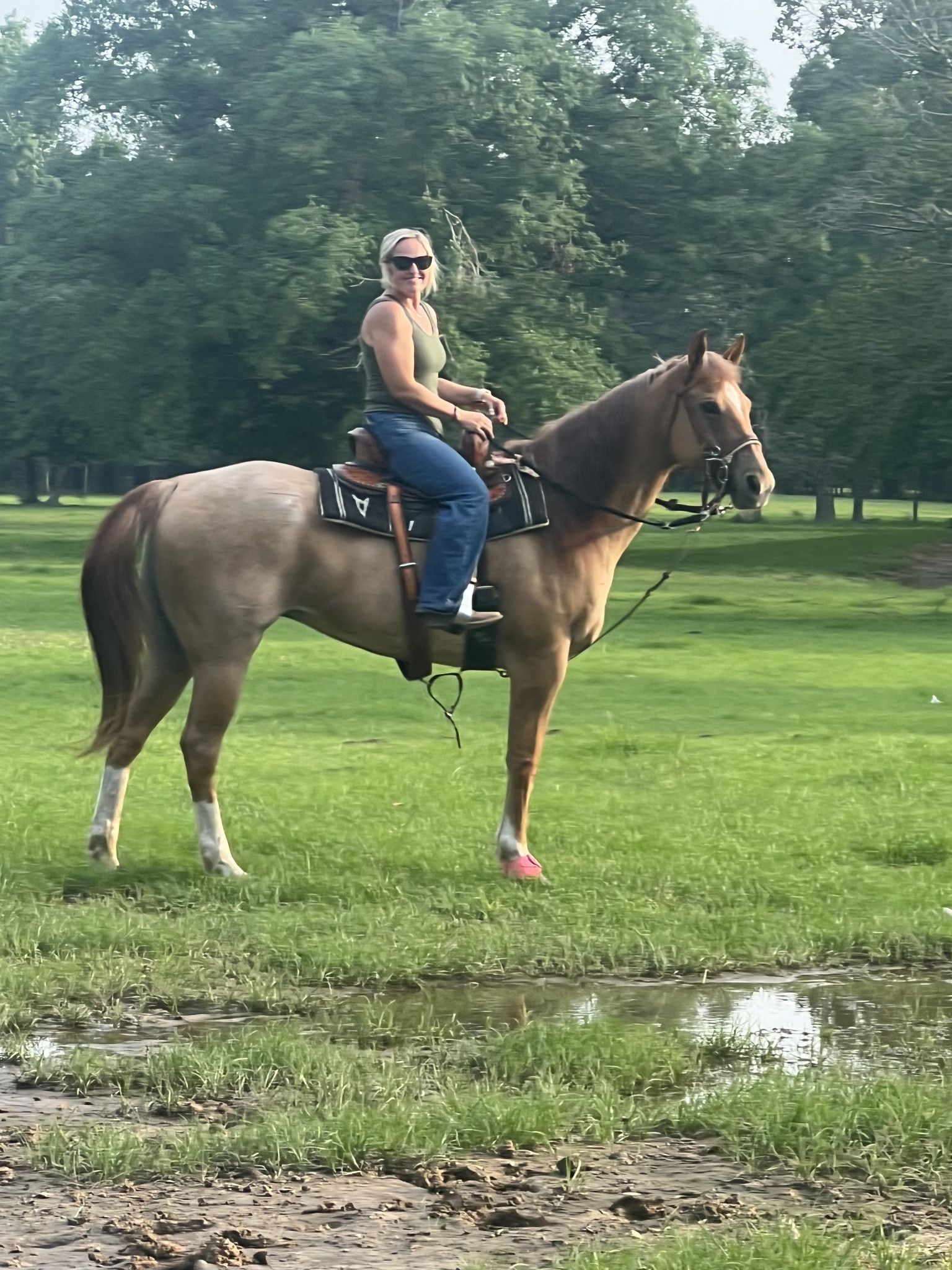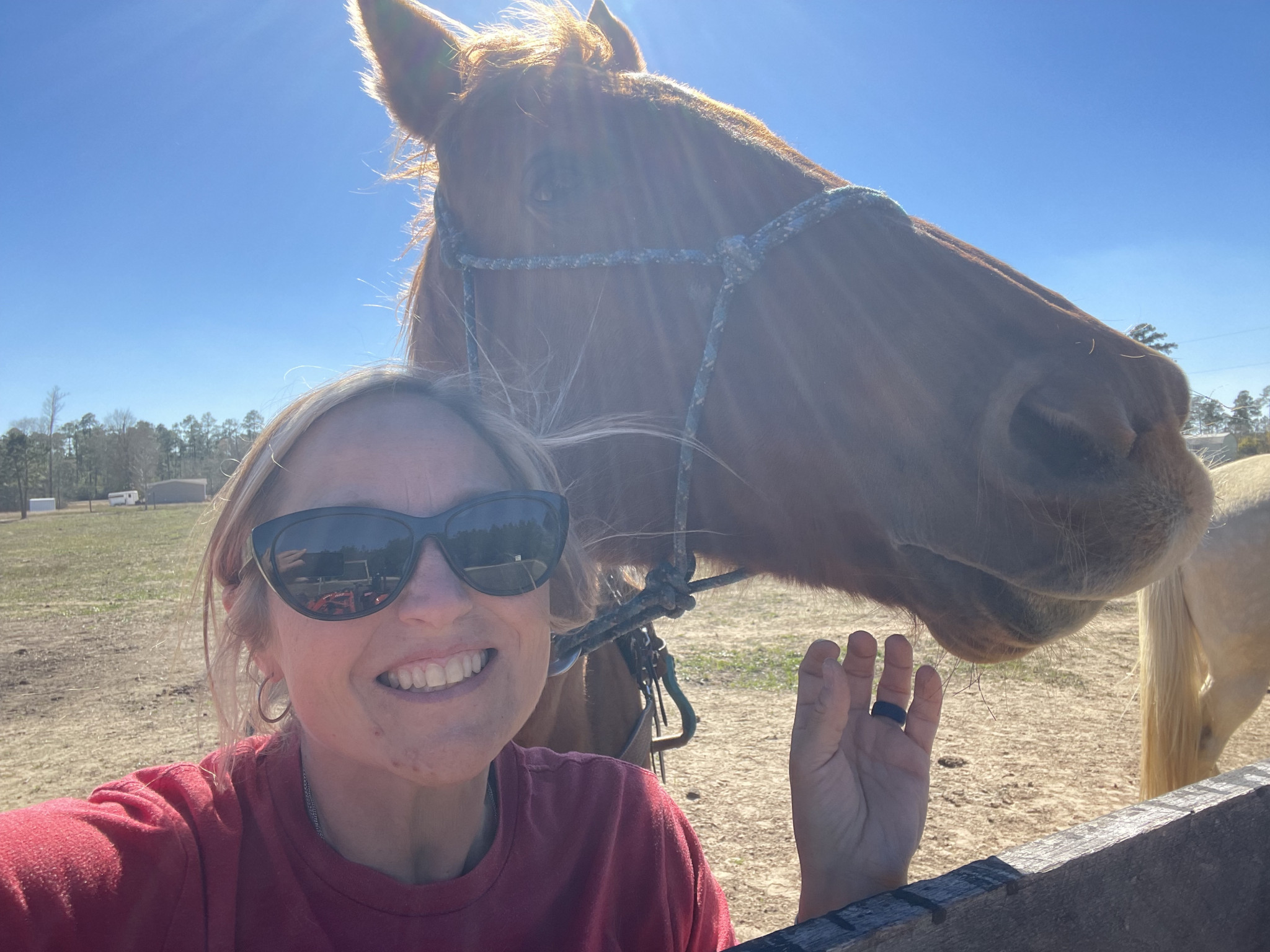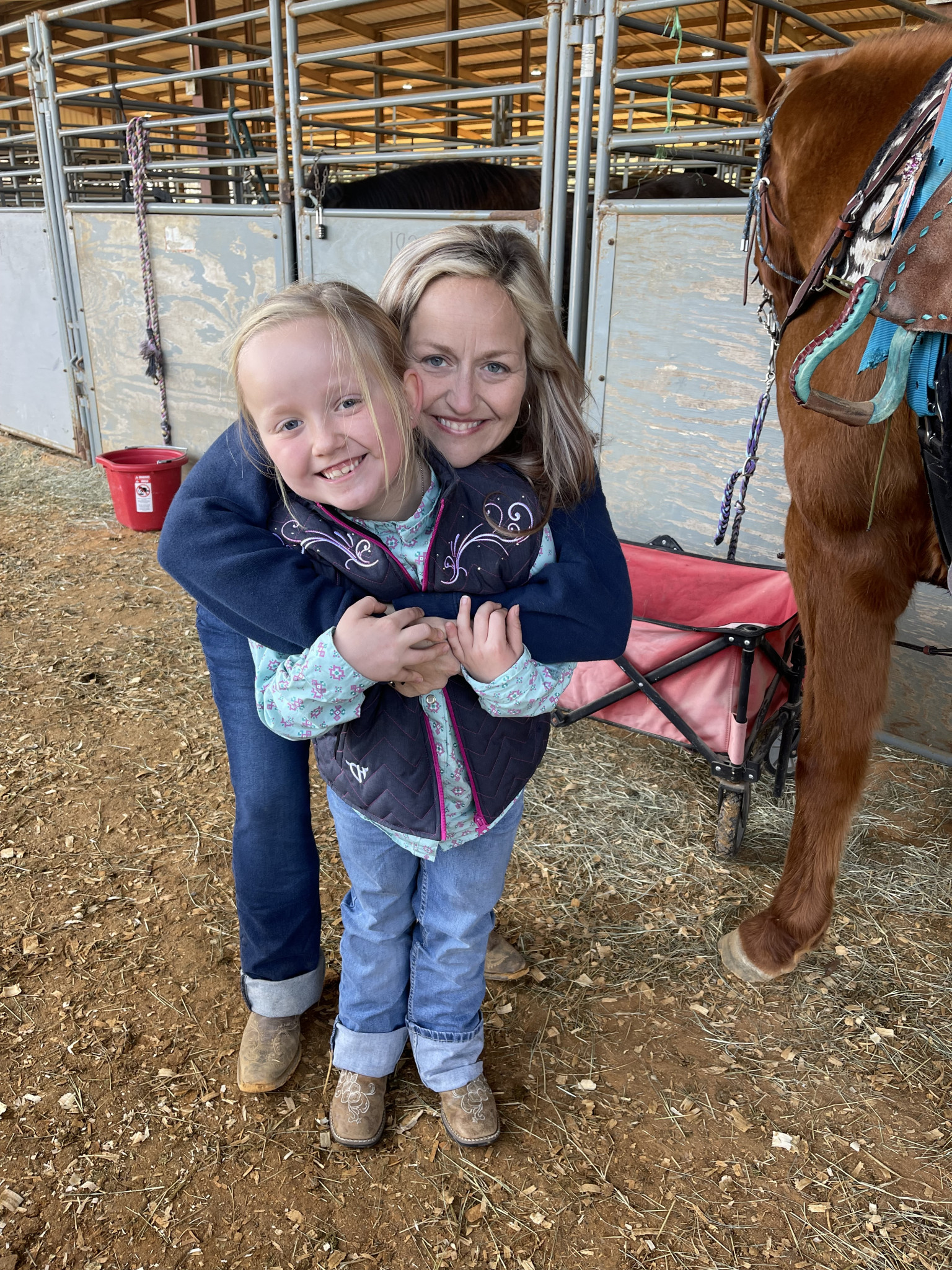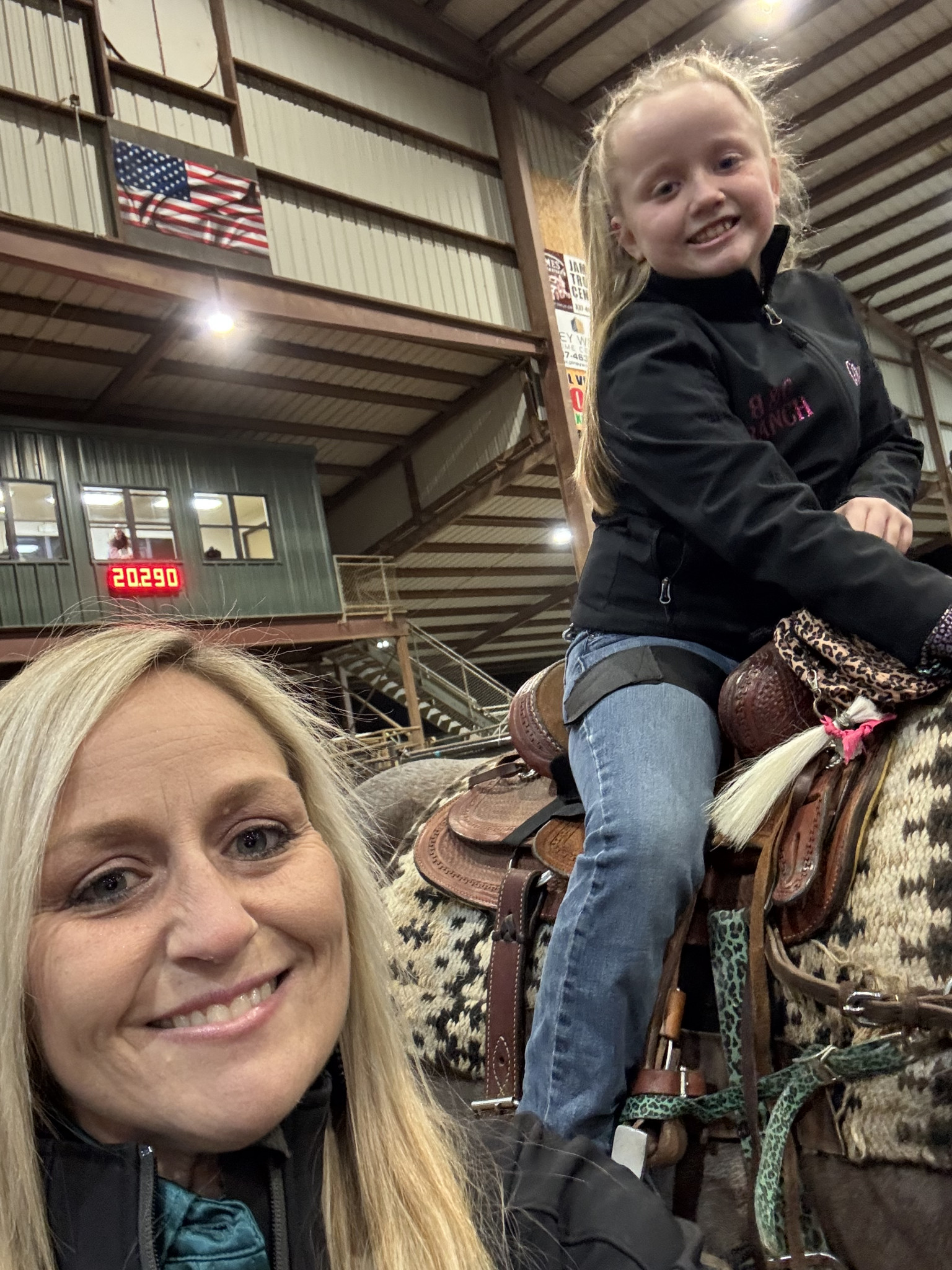 The daily on the ranch; taking care of the animals, or off to barrel races with our girl we make it. I love this chaos with my family.